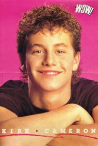 One of my celebrity crushes from the 80s is Kirk Cameron . If you don’t know who Kirk Cameron is, he is an actor and he starred in a 80s tv show called Growing Pains . I have never seen Growing Pains before but I discovered him and he stole my heart straight away . He’s just so cute, there’s like a sparkle in his eyes, they are like diamonds and safires . I’m glad I discovered him when I did . How can someone be that perfect ?, you can definetely tell that god took his time and put his heart and soul into him when he made him . Looking like that is a blessing .