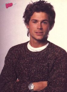 how can you resist, he is beautiful . He has beautiful eyes, like I just can’t stop staring at him, he takes my breath away, haha . I have like hundreds of photos of him on my phone and the one I have at the moment, is a photo of him from St Elmo’s fire, like how can someone look that good, that’s illegal . He’s about fifty something now, like he’s old enough to be my dad, but there’s nothing wrong with crushing over someone, you can always fall in love with an old picture of someone from the past . Every time I watch a film that he’s in, I always start blushing and it’s such a weird feeling. But he is so cute, there were so many good looking men in the 80s and 90s, and beautiful women, like Ally Sheedy, Molly Ringwald, Diane Lane, Brook Shields, Phoebe Cates, Demi Moore, Jennifer Beales, the list goes on forever . But yeah no, Rob Lowe is handsome, he’s such a cutie, I’m so glad that I discovered him when I did . I’m definetely gonna watch more films that he’s in . The other day, I was watching an interview and he was about 19 and he was talking about what it was like being a heartthrob and I was just lost in his eyes, he is gorgious . How can someone be that cute ?.