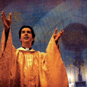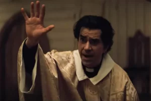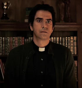 There was also another thing where, every time there was a church scene, I would imagine some weird shit in my head . Every time the priest shows up in the ST Patricks church, it’s like every time he opens the door and makes an entry . I just couldn’t help but think of that scene in The IT Crowd, where Moss, Roy and Jen go to Denolm’s funeral, and then his son, Douglas turns up and shouts ” Fatherrrrrrrrr !!! ”, every time I see the priest show up, I always think of that bit . I don’t know why, I just struggle to take things seriously sometimes because of random thoughts . Midnight Mass is really really disturbing and serious so thinking of funny silly things will help the situation a little bit . If father Paul did that, that would have been hilarious, but The IT Crowd is a comedy and Midnight Mass is a demented horror so the two don’t go well together . That scene is hilarious, just how Douglas turns up and he has a fight with the priest, it’s just so funny . I love The IT Crowd, it’s one of my all time favourite TV shows . So that never happened in Midnight Mass but in an alternate universe, it did happen .