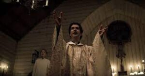 After chaos unravels and the people on the island are witnessing some weird shit . Like there’s been a whole bunch of weird and strange events happening on the island . Cats are getting washed up on the shore, something’s been happening to them. You know, after Riley moves to this island, they experienced an oil leak, and other things have been happening as well . A few minutes into the first episode, we are introduced to another character, which is Father Paul . Father Paul is some demented priest who operates in this church. When I first saw him, I was like ” who the bloody hell is that ?, he looks demented ”. He was a bit eccentric and a bit mad . The whole time, you don’t know whether he’s the real priest or whether he’s not . It was almost like if you got some geezer from an asylum to do sermons in a church for a day and he suddenly flips and goes on a rampage, that’s exactly what it would be like . The actor who plays him is bloody brilliant, what an amazing actor . The performance he gave as that character is incredible . I’ve never even heard of this actor before, but now, as I got introduced to him, I’m amazed, I’m definetely gonna watch more of his stuff, cause he’s great . Himesh Linklater is so very simuliar to his character . He’s demented as well. I was watching a video, it was like a Q & A video with the cast of Midnight Mass. I just watching him and he does these hand gestures, that are so simuliar to what the priest does in the show . I was like ” Yeah man, demented priest ”, he ain’t different to his character . I can see why they chose him to play the role, they’re very simuliar in comparison, except the actor doesn’t wanna kill everyone on the island with his religious ways, haha . I’m so glad that he got an award for that role, it’s so well deserved . I actually don’t think that he won anything just yet, but I heard that he got nominated for a Emmy, which I really do hope that he wins something . He really went all out with his performance. The interesting thing about this character, is that you don’t know whether he’s good or whether he’s bad, you won’t know when you watch the first episode, but a few episodes in, it will all come together and it will all make sense .