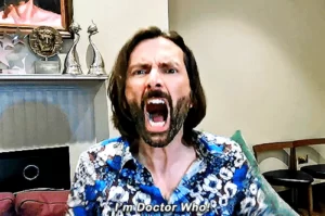 I was awaken from my slumber by this strange man singing and shouting outside of my house. I had no idea who this man was until I realised it was David Tennant, what the bloody hell is he doing outside my house?. The next thing you’re gonna tell me is that he used to be a priest. I couldn’t hear the normal sounds of nature, like birds. All I could hear was ” KILLING ME SOFTLY with his song !!!” god I think I might be going mad. I would contact my therapist but he’s a busy man. Also he says he’s been experiencing the exact same thing, maybe I’m not so mad after all. Honestly, who the fuck brought him here, screaming like a bloody bird. Honestly, can you be a bit quicker? . Why not?